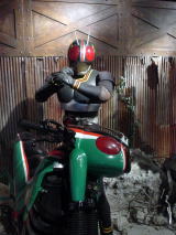 バトルホッパーの横に立ち、ファイティングポーズを構える仮面ライダーBLACKが迎えてくれましたよ!