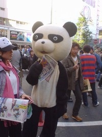 会場外でチラシを配っていたパンダさん。